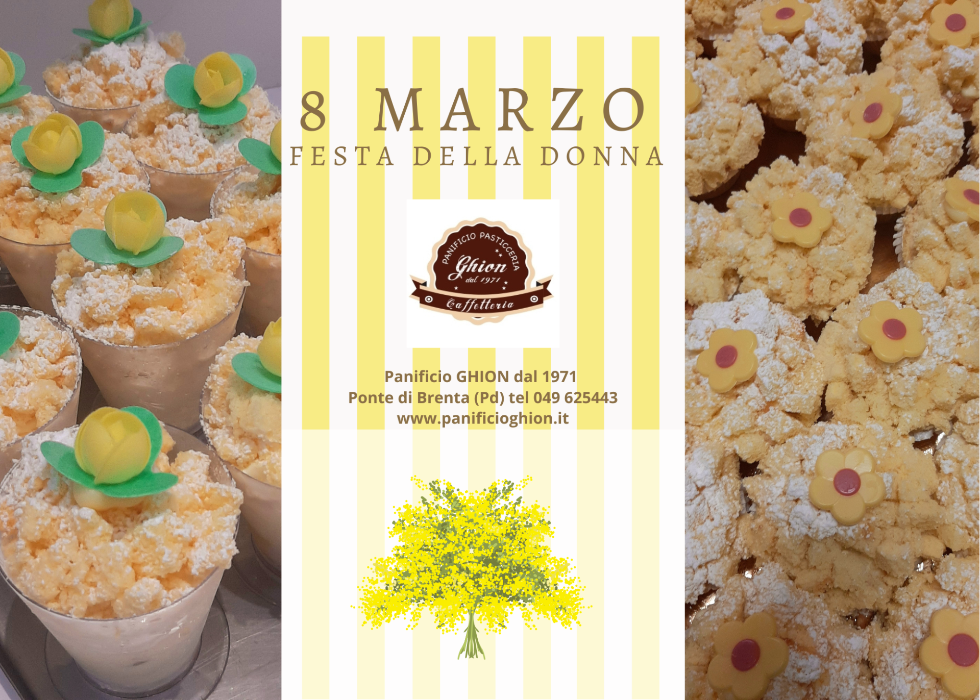 Festeggia l'8 Marzo con i Dolci speciali: muffin a mimosa, dolce a mimosa, biscotti a fiore. bicchierini mimosa con crema al limone.