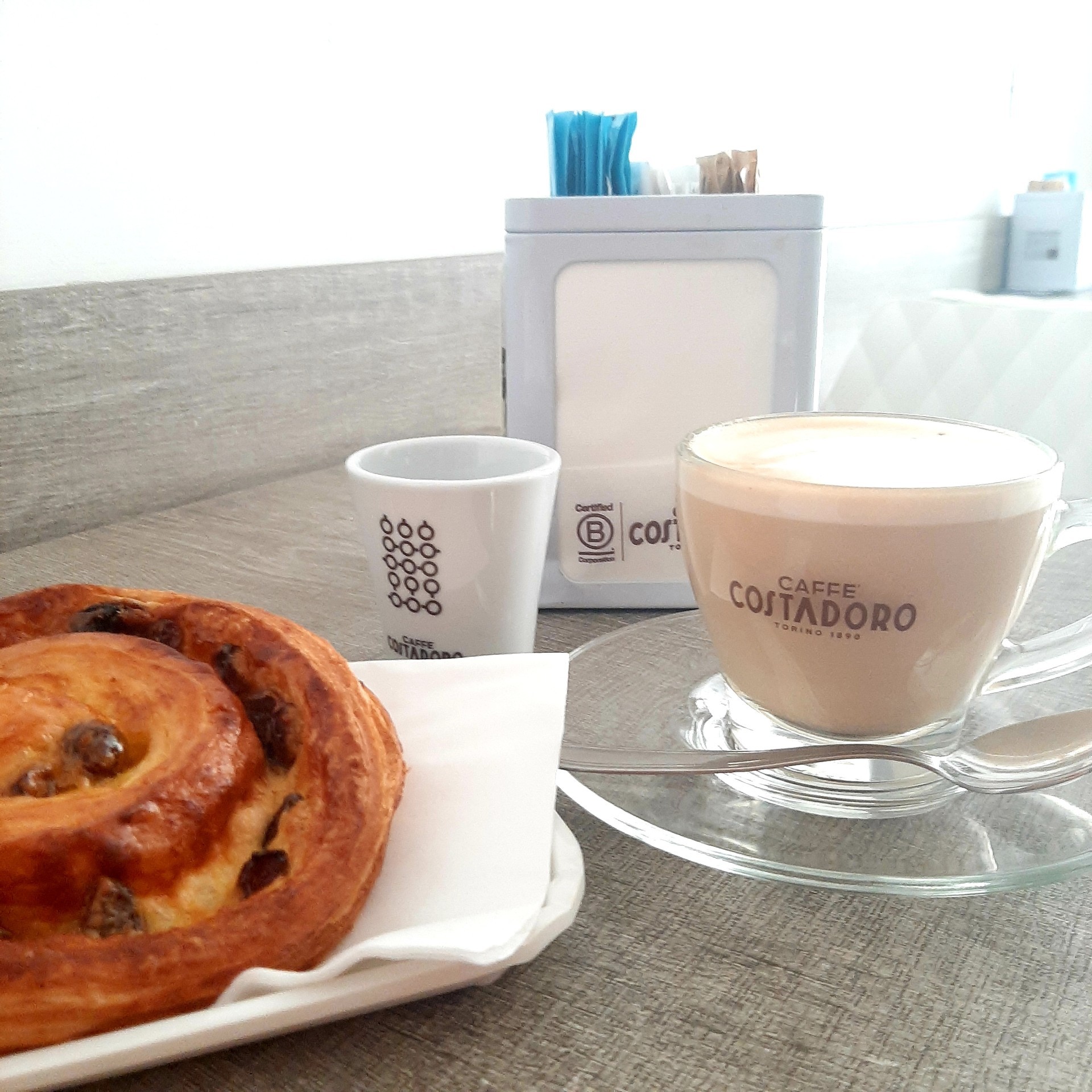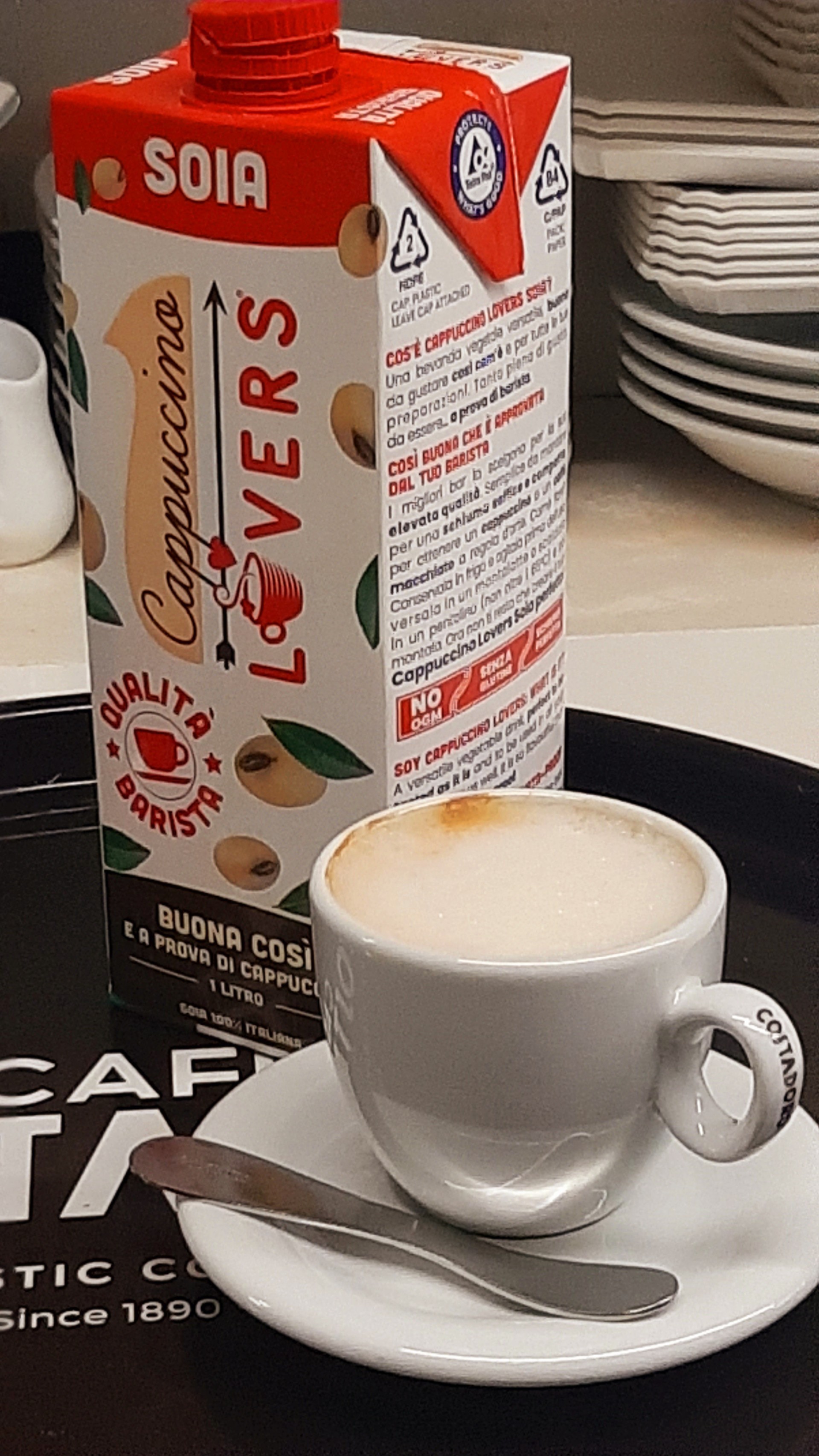 Oltre al caffè, macchiatone, marocchino, capuccino con latte 100% veneto, potete chiedere anche la bevanda alla soia, al cocco e all'avena e anche il latte senza lattosio.