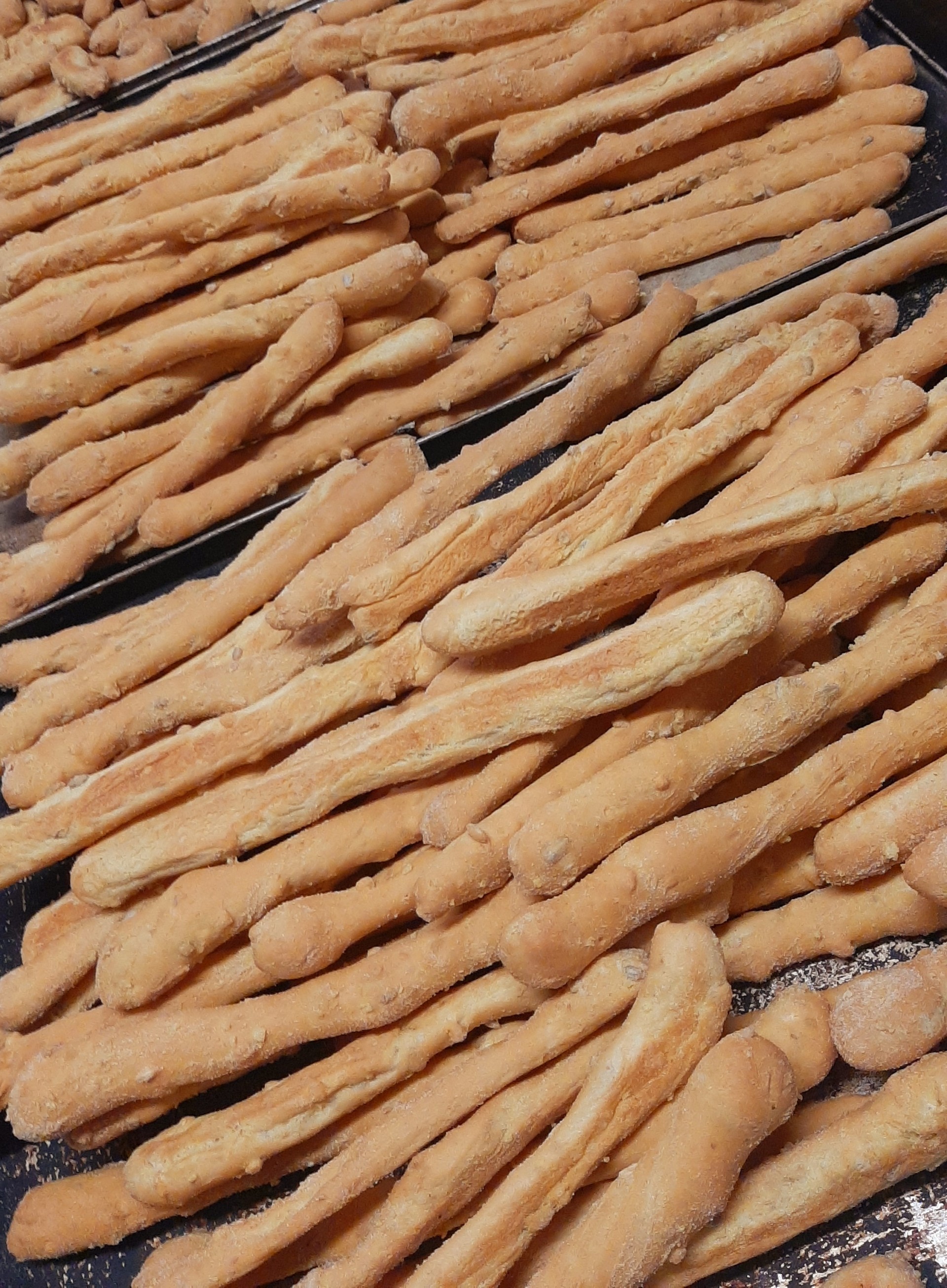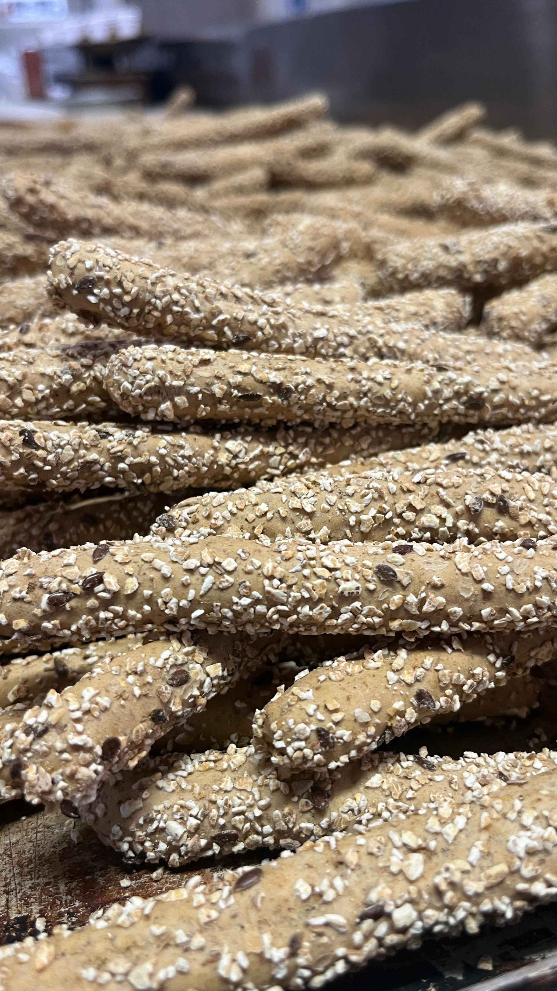 Siamo specializzati nella produzione di grissinoni al mais e semi di girasole , grissinoni alle noci , alla zucca e mais, naturali, al sesamo, oltre alla nostra linea di CROSTINI senza lievito.